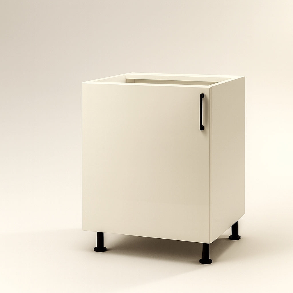 Corp de bucătărie cu ușă din MDF melaminat alb lucios, dimensiuni 86.2 x 45 x 52.8 cm. Construcție solidă cu carcasă din PAL melaminat alb neted Egger de 18 mm, balamale Blum Expando pentru deschidere silențioasă și rezistență sporită, picioare reglabile Hafele Axilo 78 și elemente de legătură Minifix Hafele. Design elegant și finisaj premium, ideal pentru bucătării moderne, cu durabilitate și funcționalitate de top.