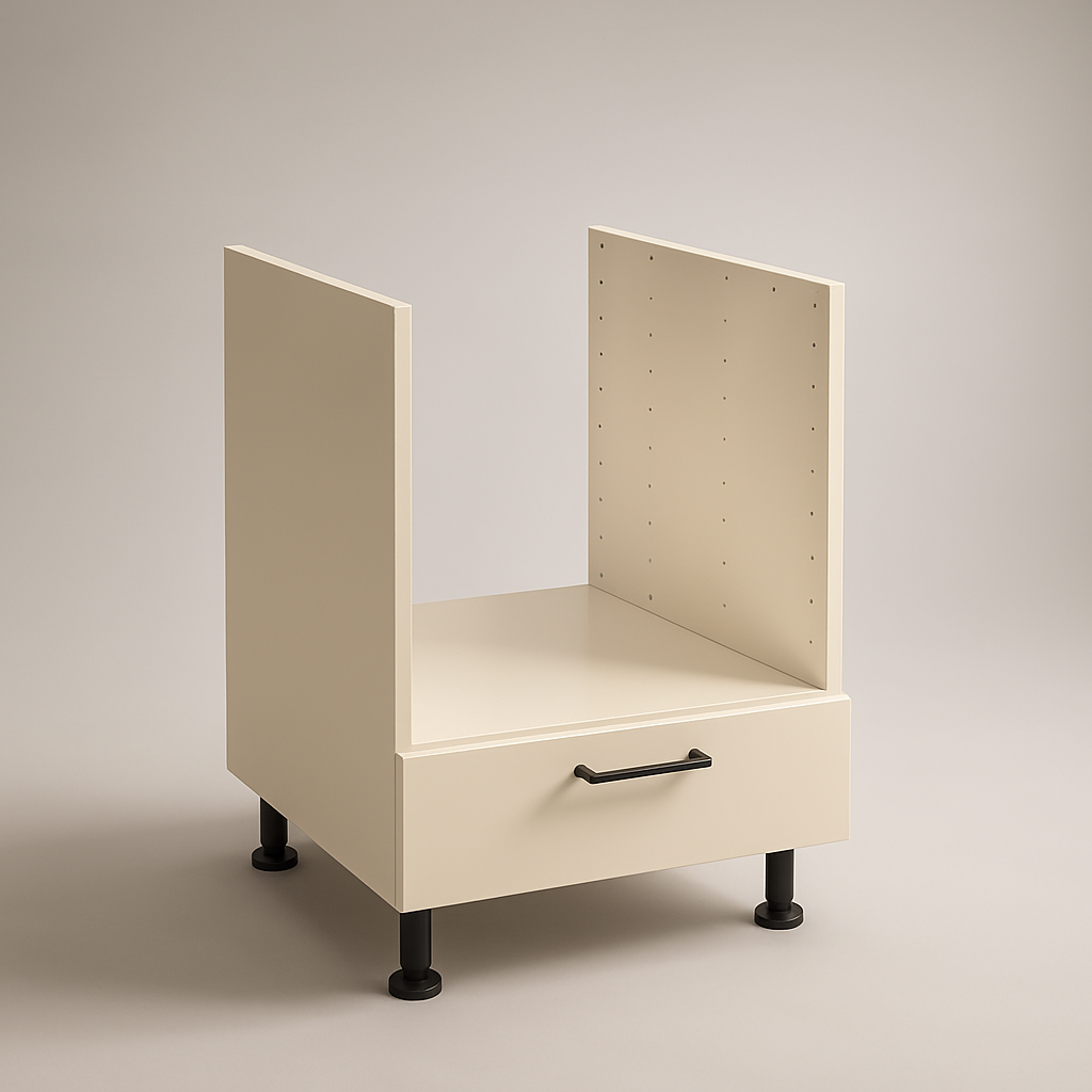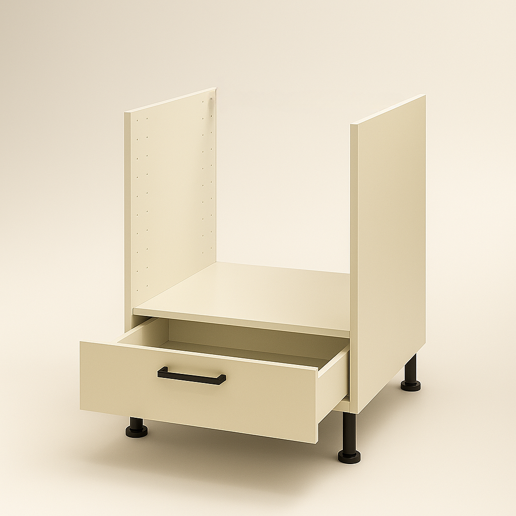 Corp de bucătărie proiectat pentru cuptor incorporabil de 60 cm, prevăzut cu sertar inferior metalic pentru depozitarea accesoriilor de gătit. Dimensiuni: 86.2 x 60 x 52.8 cm.